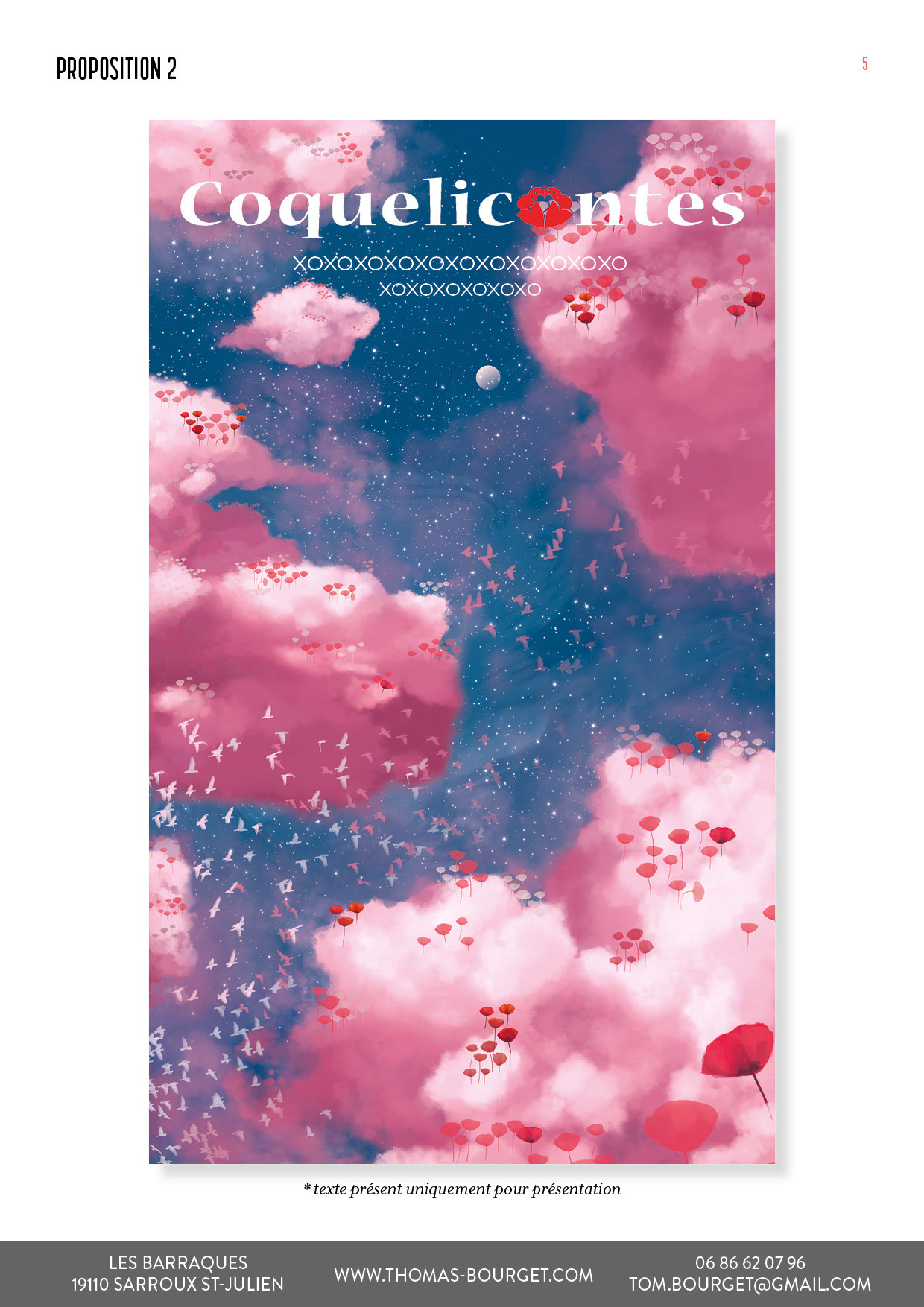 Illustration réalisée pour l'affiche du festival Coqueliconte 2022 présent en Creuse et en Corrèze. Proposition retenue.