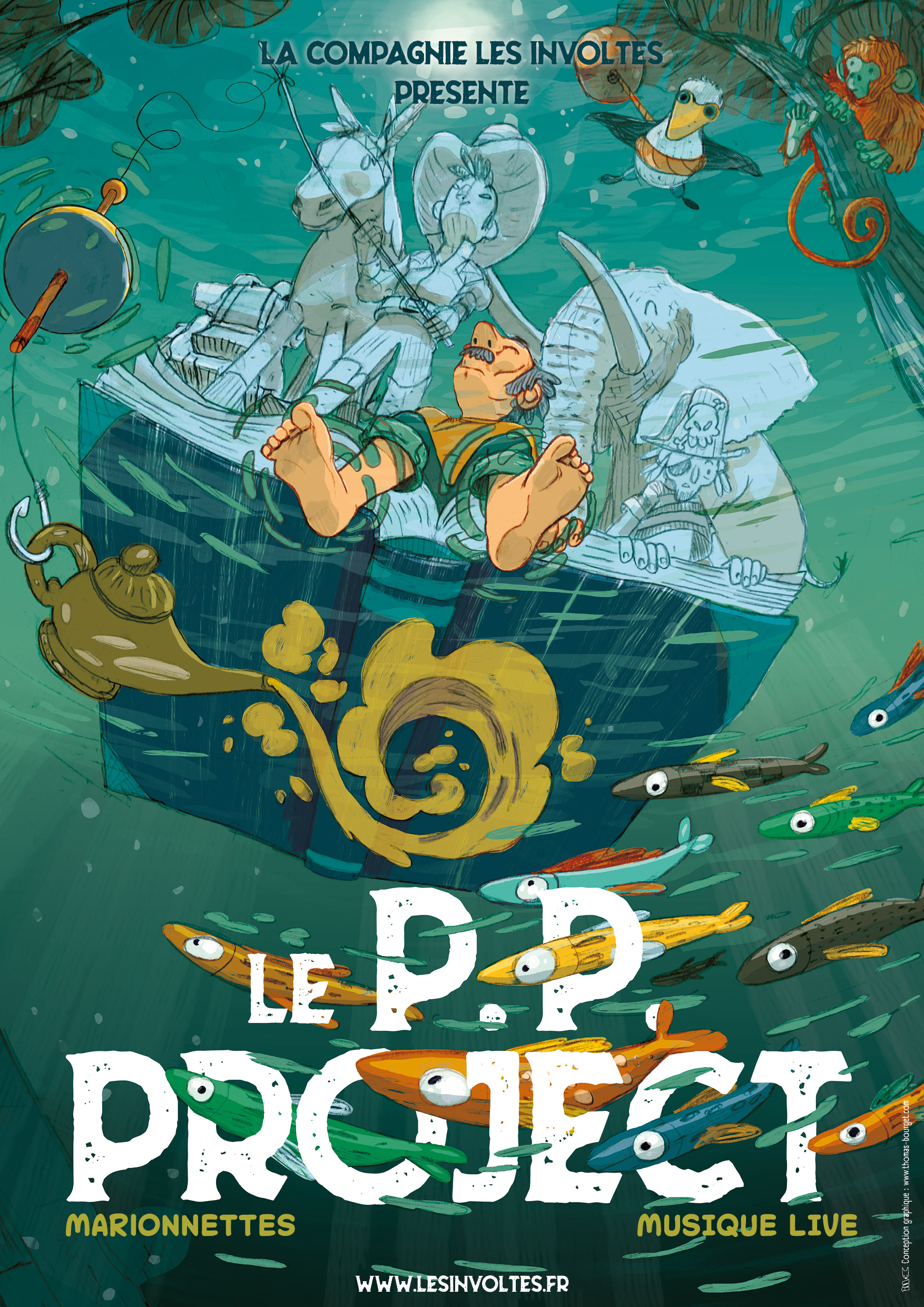 Réalisation d'une affiche illustrée, commandée par la compagnie LesInvoltes. Communication sur un spectacle de marionnette et de musique live intitulé "Le P.P.Project"