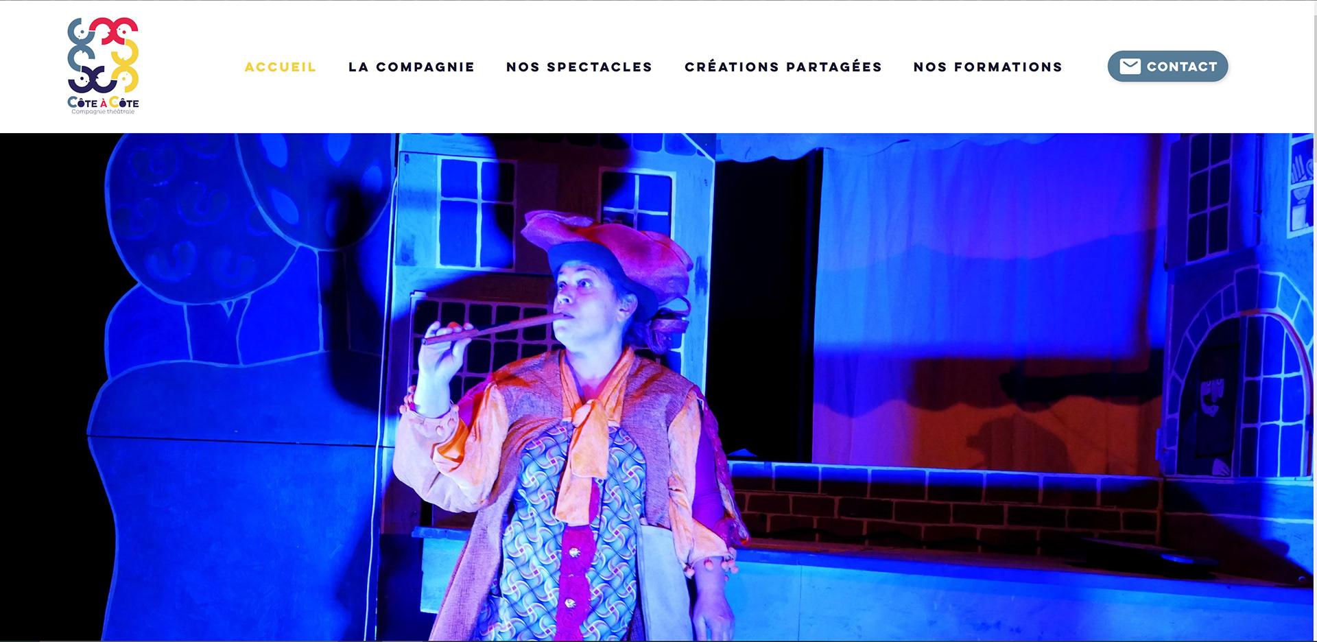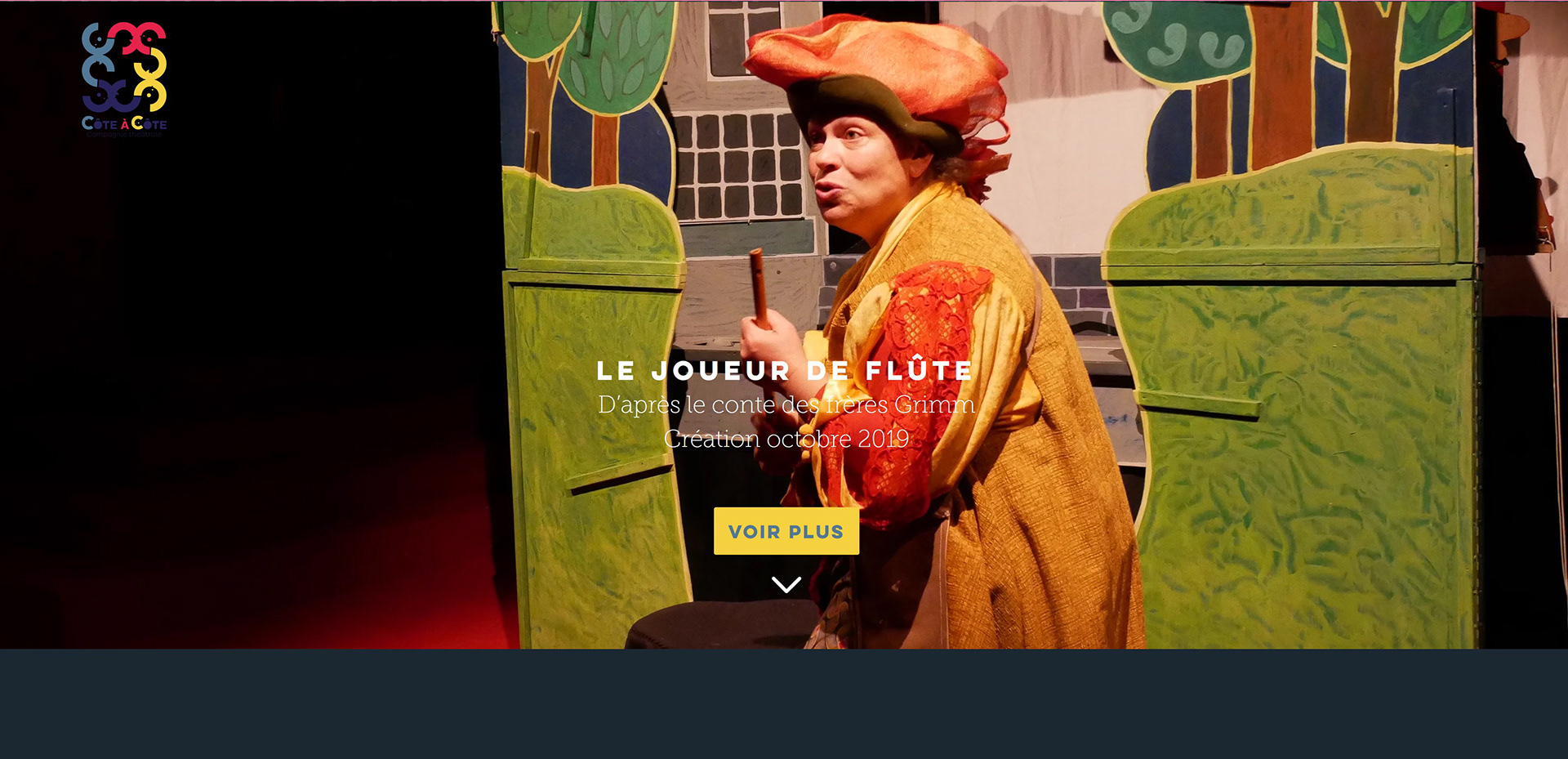 Compagnie Côte À Côte Réalisation du logo de la compagnie ainsi que son site internet. Pour l'un de ses spectacles "Le Joueur de Flûte" (d'après le conte des frères Grimm), réalisation d'un teaser et d'une affiche.