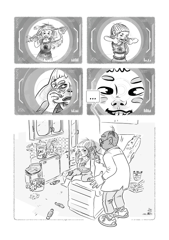 Planche de bande dessinée réalisée pour le fanzine "L'Escampette" de l'illustrateur Pierre Cesca. Thème : "dans ta tête..." www.pedro-junior.com