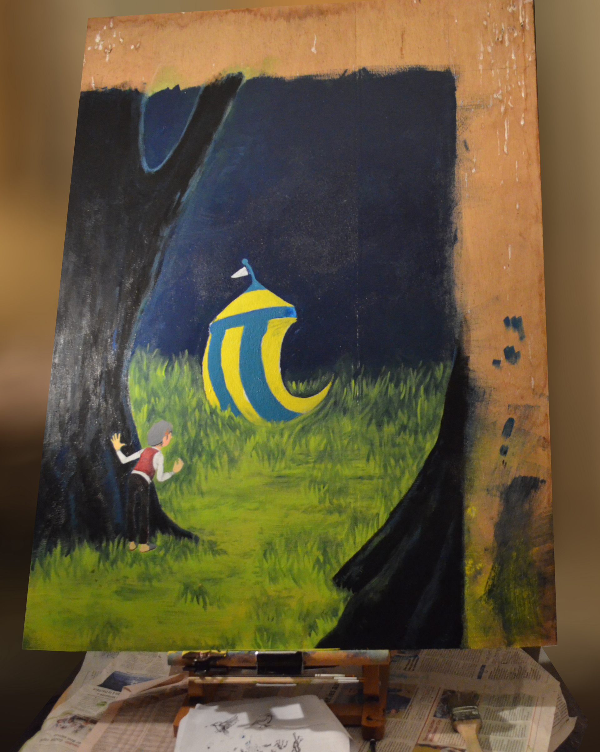 Affiche réalisée dans le cadre du festival Musicalement Vôtre qui a lieu sous chapiteau à Liginiac en Corrèze. Réalisation de l'illustration acrylique sur bois. Typographie ajoutée numériquement.